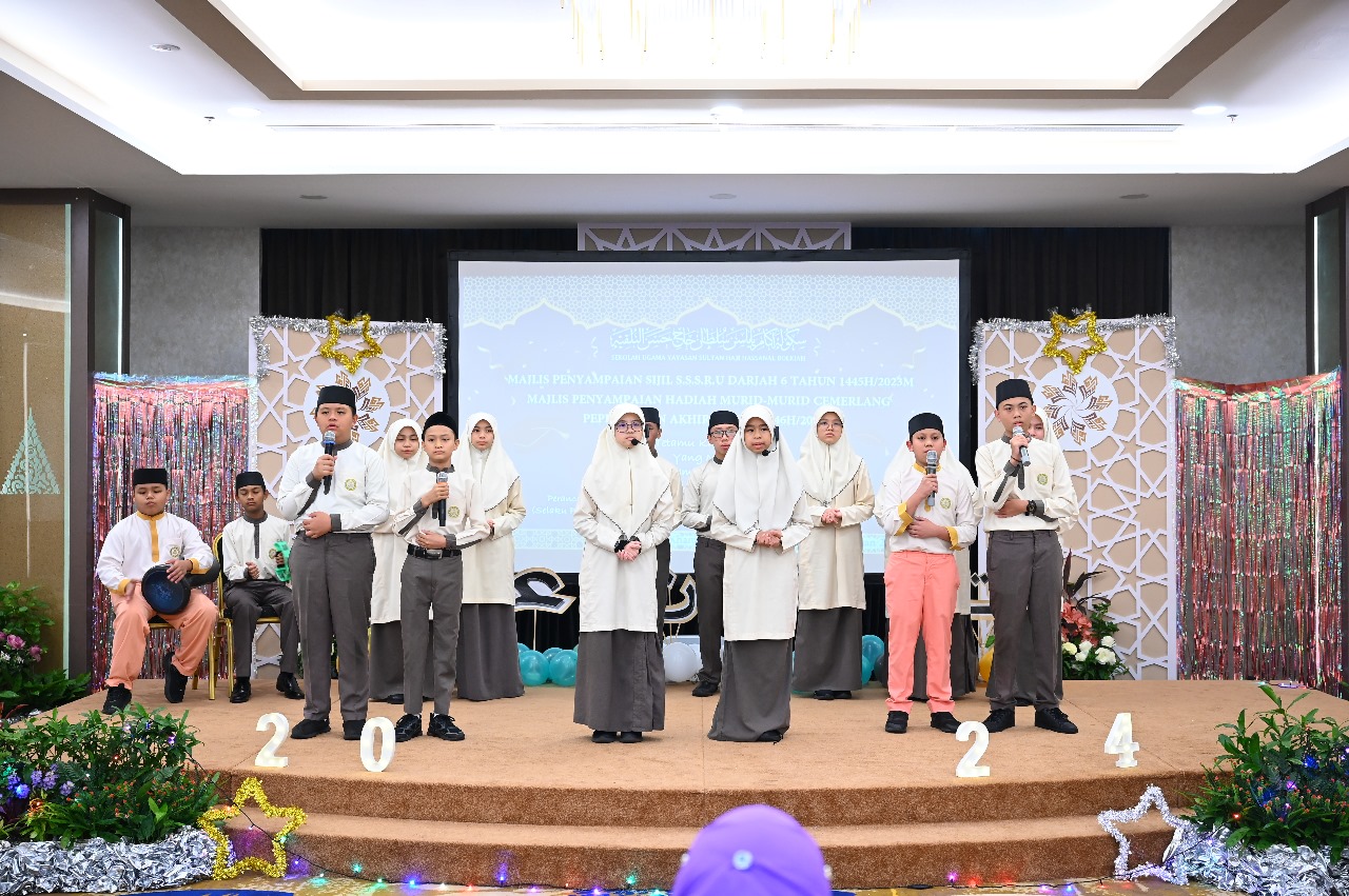 Bandar Seri Begawan, Khamis, 26 Jamadilawal 1446 bersamaan 28 November 2024–Seramai 75 orang murid Sekolah Ugama Yayasan Sultan Haji Hassanal Bolkiah menerima sijil dalam Majlis Penyampaian Sijil Peperiksaan Sijil Sekolah-Sekolah Rendah Ugama (SSSRU) Darjah VI Tahun 1445H/2023M yang diadakan di Dewan An-Naura Kompleks Yayasan Sultan Haji Hassanal Bolkiah petang tadi.
