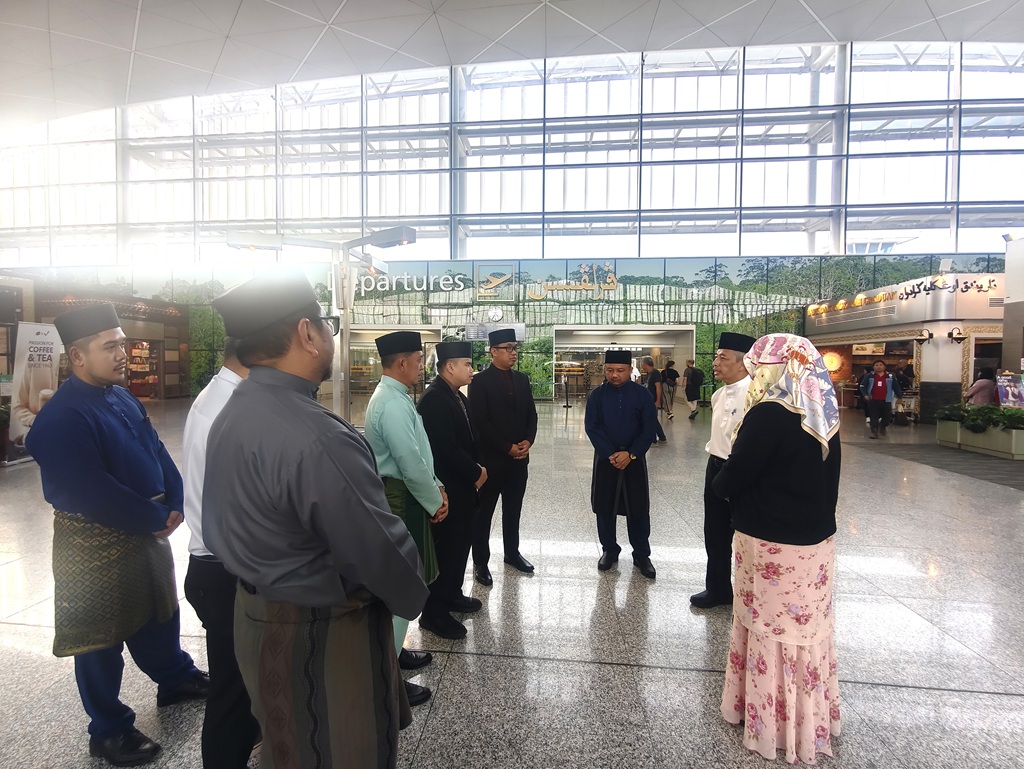 Hadir di Lapangan Terbang Antarabangsa Brunei bagi mengucapkan selamat belayar ialah Yang Mulia Datin Hajah Umiyati binti Haji Mohammad Noor, Pemangku Ketua Bahagian Kemajuan Syi’ar Islam dan Yang Mulia Pengiran Dr. Haji Amiruddin bin Pengiran Haji Damit, Pengetua Institut Tahfiz Al-Quran Sultan Haji Hassanal Bolkiah.