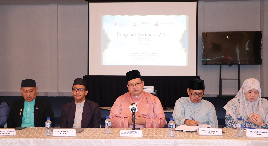 Daerah Tutong, Isnin, 29 Rejab 1447 bersamaan 19 Januari 2026–Bagi menyalurkan maklumat serta memberikan penjelasan kepada para penghulu dan ketua-ketua kampung mengenai pengurusan permohonan bantuan Zakat, perkhidmatan Jabatan Urusan Zakat, Waqaf dan Baitulmal di bawah Sistem Kebajikan Negara (SKN), di samping memperkenalkan tentang Waqaf dan Baitul Mal, juga dalam usaha mempertingkatkan perkhidmatan pengurusan Zakat, Waqaf dan Baitulmal di Negara Brunei Darussalam, Jabatan Urusan Zakat, Waqaf dan Baitulmal, Kementerian Hal Ehwal Ugama meneruskan pelaksanaan Program Kembara Zakat 2026 pagi tadi bertempat di Kediaman Rasmi Pegawai Daerah Tutong, Daerah Tutong.